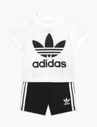 L'ensemble bébé Tee-shirt et short "Trefoil" noir et blanc d'Adidas est un must-have pour les petits stylés. Fabriqué avec des matières d'excellente qualité et orné du logo "Trefoil", ce look classique et intemporel est l'un des plus reconnaissables du monde de la mode.