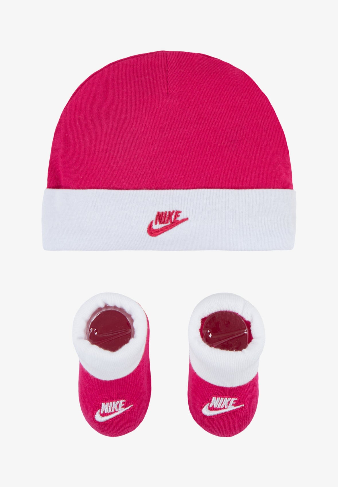 Idéal comme cadeau de naissance, le petit pack de chez Nike comprend un bonnet avec ses chaussettes assorties.